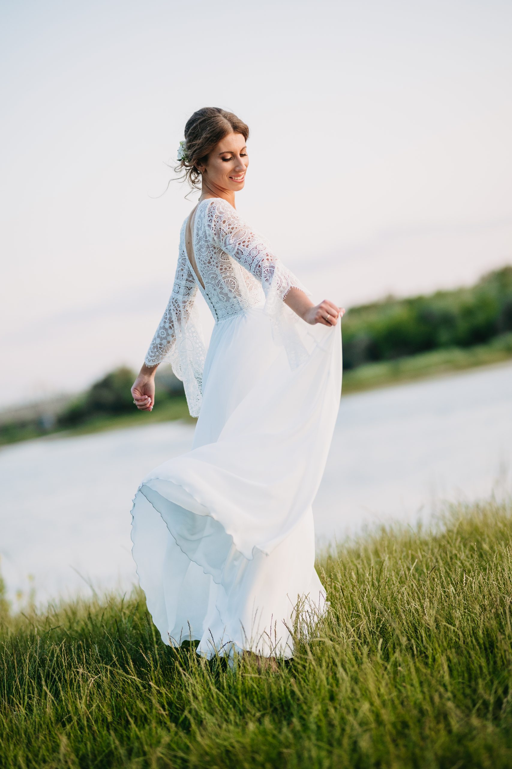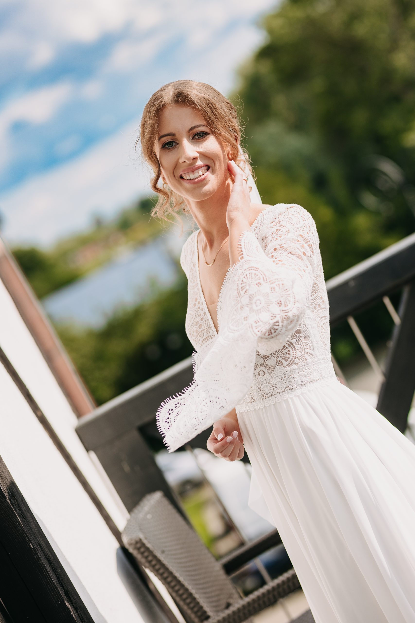 Każda miłość ma swoją historię. Każda Panna Młoda – swoją suknię.  Znalezienie tej jedynej sukni ślubnej bywa długą i pełną emocji drogą… Pani Angelika odnalazła swoją w naszym salonie, wybierając Weronikę – romantyczną i delikatną kreację z koronkową górą oraz charakterystycznymi, rozkloszowanymi rękawami w subtelnym, gotyckim stylu. To projekt stworzony z myślą o kobietach, które marzą o połączeniu lekkości, elegancji i niepowtarzalnego charakteru. Dziękujemy za zaufanie i możliwość bycia częścią tej wyjątkowej historii.